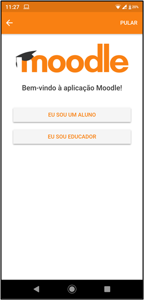Figura 1 - Tela inicial do aplicativo Moodle nos sistemas Android