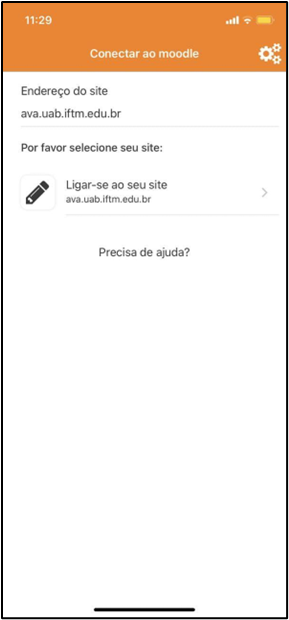 Ao executar o aplicativo, será solicitado o endereço do site do ambiente virtual ao qual você deseja se conectar. Insira, no campo indicado o link do moodle desejado, por exemplo: https://ava.iftm.edu.br e, posteriormente, clique em “Ligar-se ao seu site”.