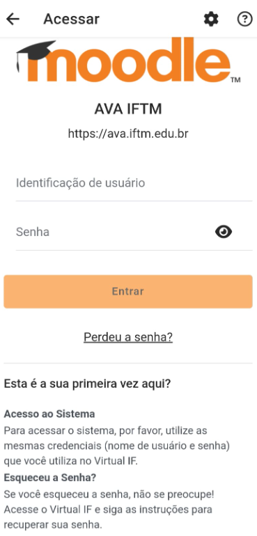 Figura 3 - Tela de login do aplicativo Moodle nos sistemas Android