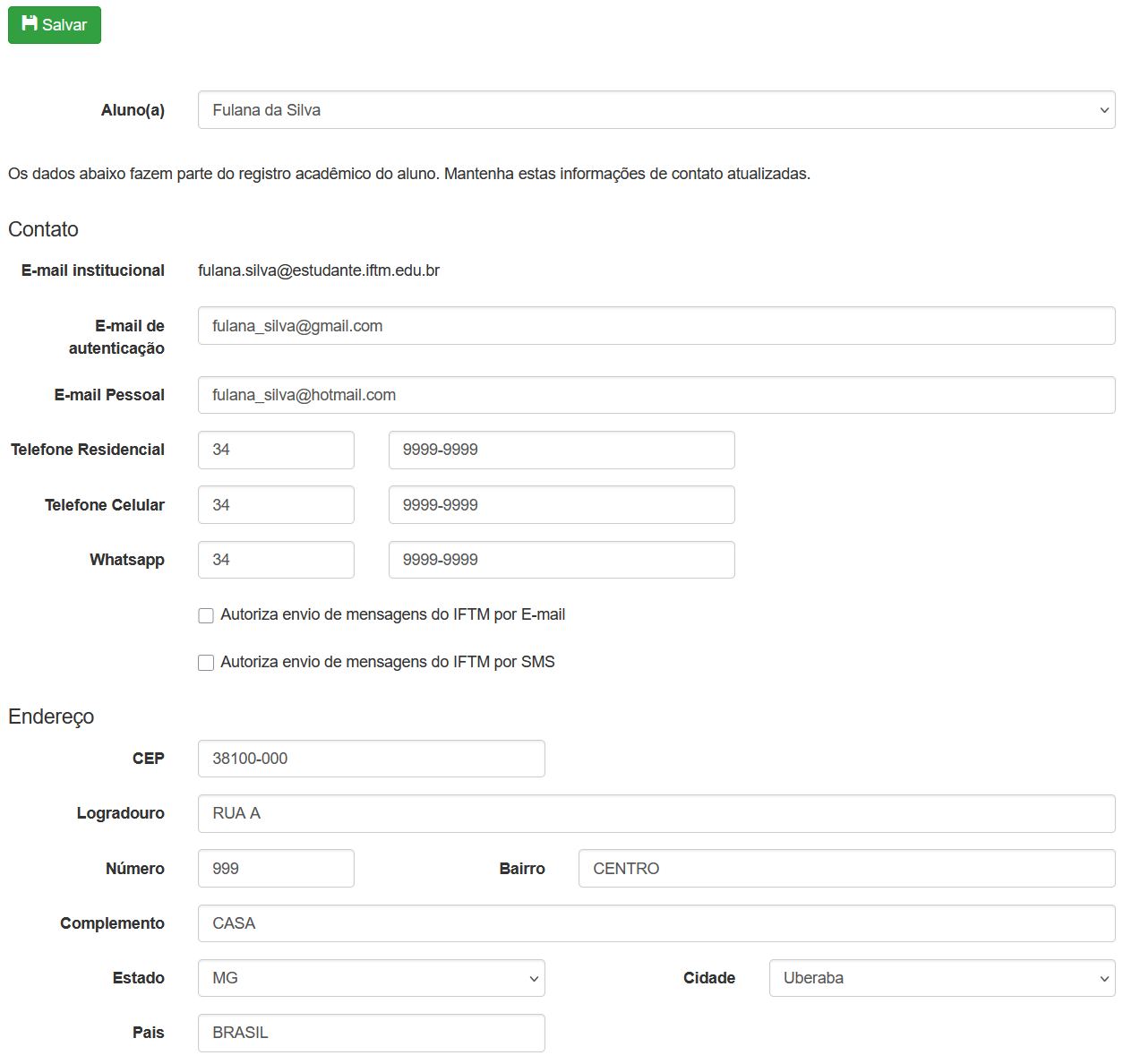 Figura 1. Tela de atualização cadastral do estudante.