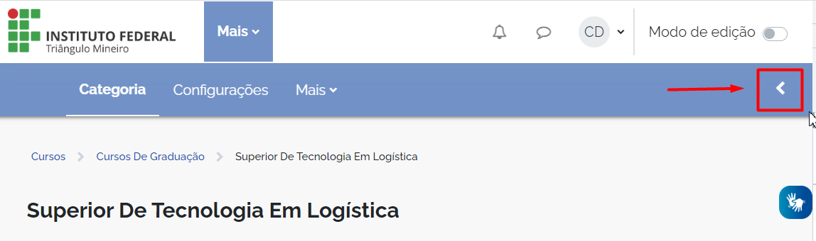 Na tela de listagem das categorias, clique sob o nome do curso desejado, logo em seguida será aberta a tela com a lista dos semestres já criados.