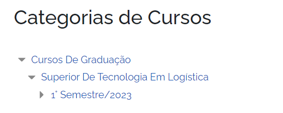 Na página inicial do moodle estão as categorias dos cursos já criados que podem ser usados para essa verificação.
