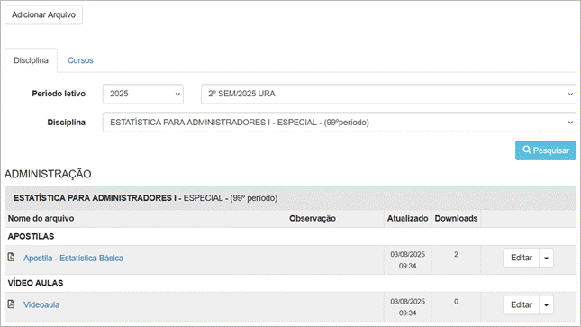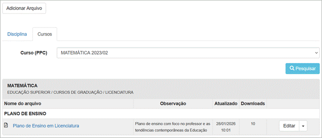 Vínculo do arquivo nas disciplinas |