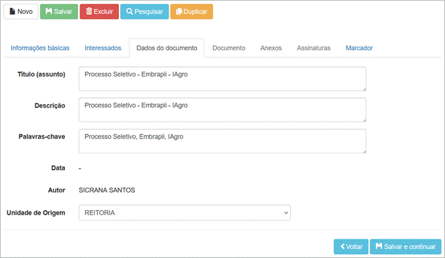 Figura 4. Tela “Documento com Assinaturas: Dados do documento”.