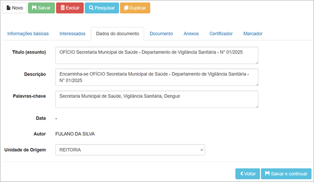 Figura 4. Tela “Certificar e Protocolar: Dados do documento”.