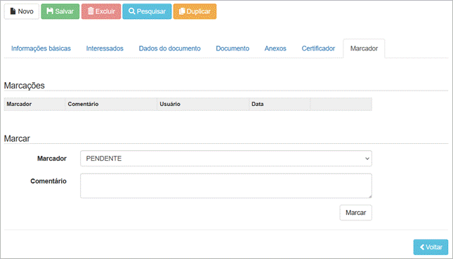 Figura 8. Tela “Certificar e Protocolar: Marcador”.