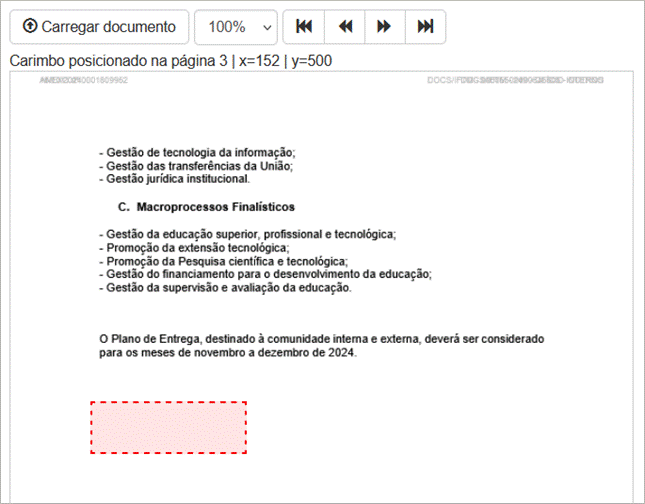 ● Clique na área do documento onde deverá estar localizada a assinatura, surgirá um retângulo com borda vermelha pontilhada (veja a Figura 3).