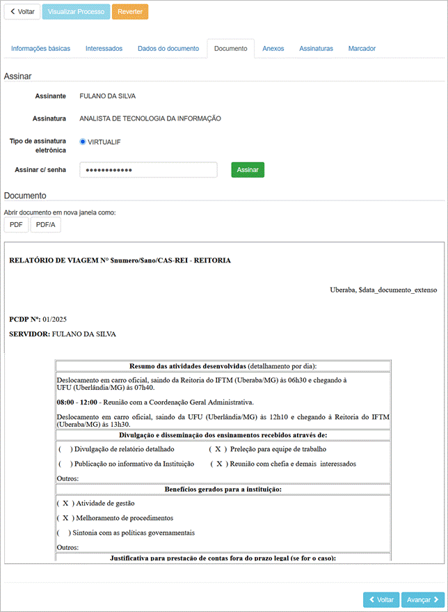 Figura 2. Tela “Assinar Documento: Visualização e Assinatura”.