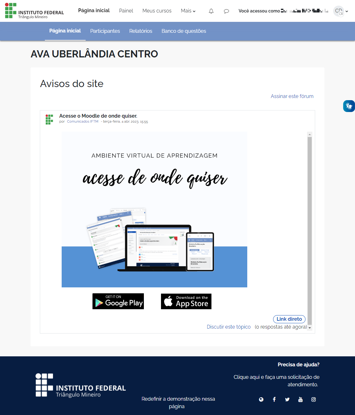 Contamos, a partir de agora, com a integração deste AVA ao aplicativo oficial do Moodle. Isso possibilita que o aluno acesse o conteúdo de onde ele quiser.
