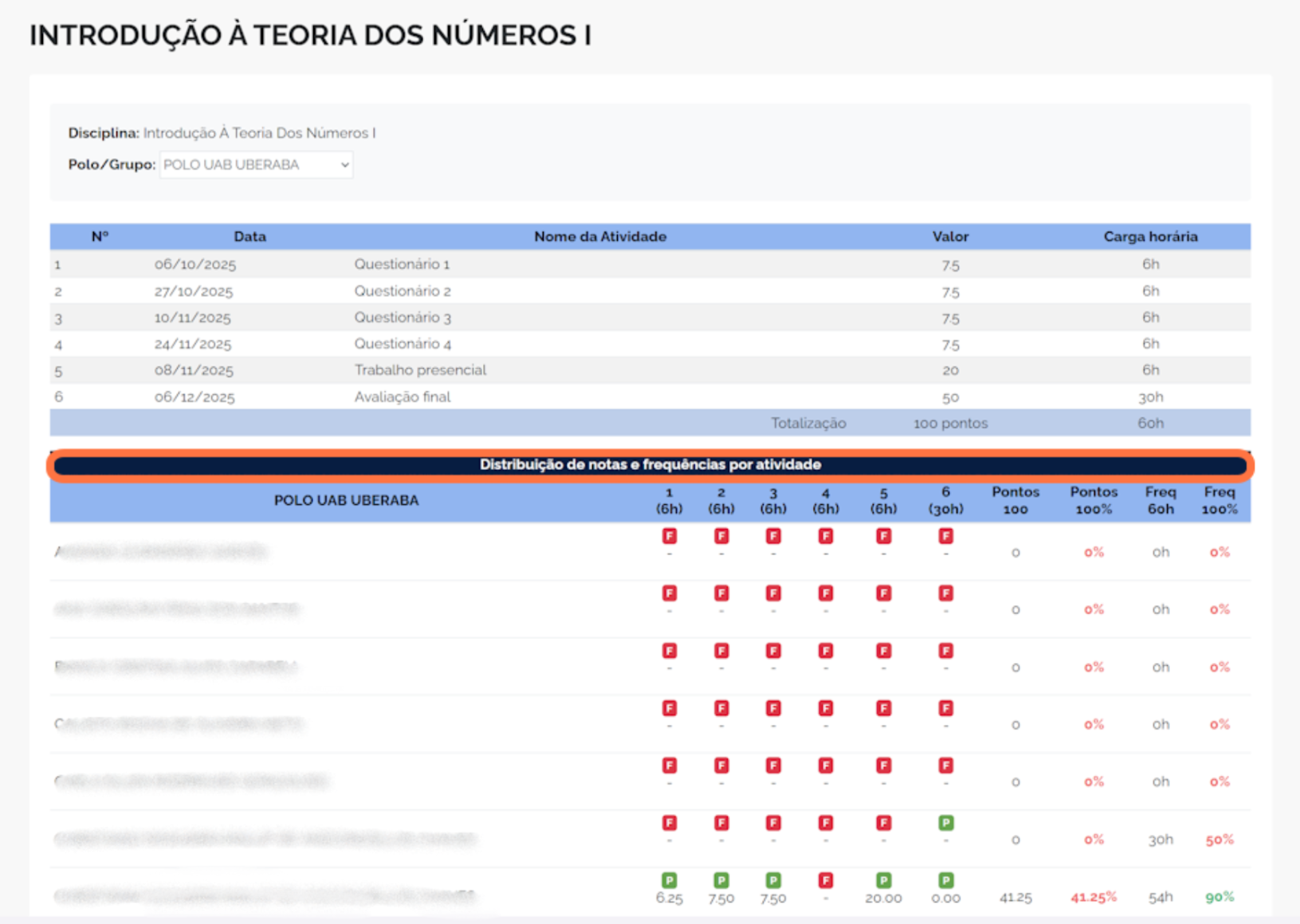 1. Acesse a disciplina que deseja finalizar, neste exemplo, Introdução à Teoria dos Números